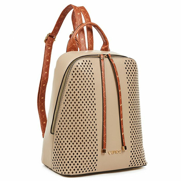 Výrobce: Verde Materiál: 100 % polyuretan Dámský batoh, zipové zapínání, nastavitelné ramenní popruhy, poutko pro snazší přenášení, vnitřní zipová a 2 volné kapsy na drobnosti.