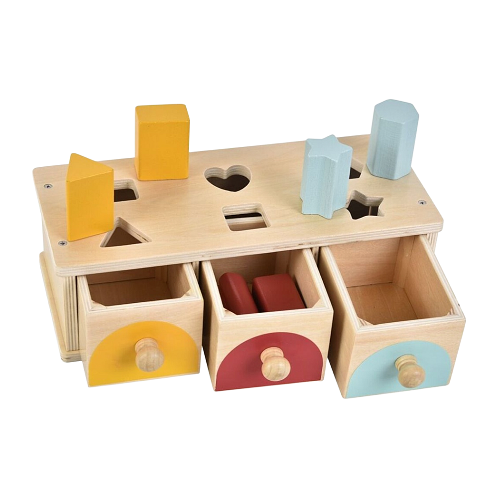 Chytrá dřevěná hračka, která spojuje zábavu s učením, vhodná pro děti od 1 roku.