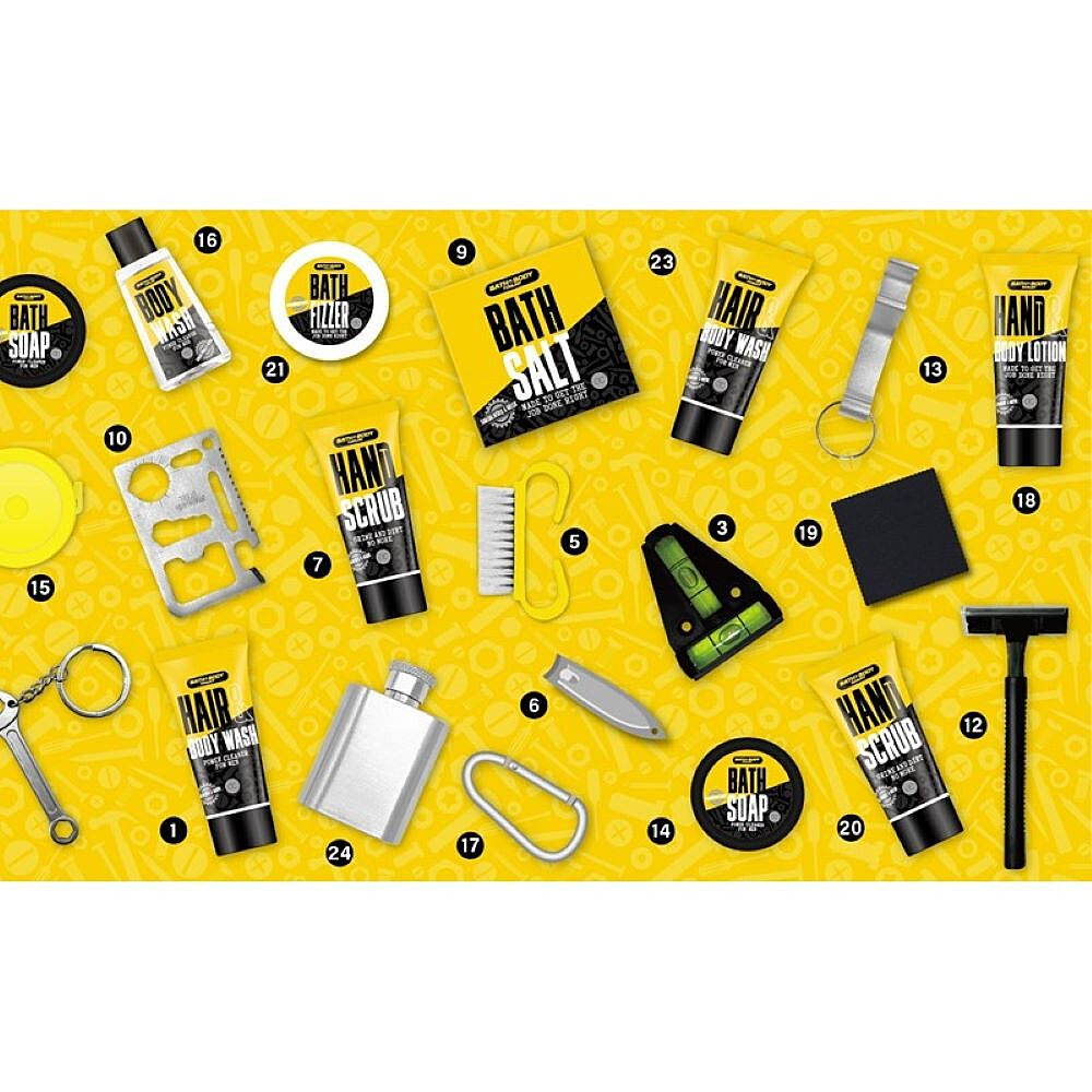 Výrobce: ACCENTRA Adventní kalendář v originální krabici ve stylu boxu na nářadí skrývá 24 překvapení pro péči o tělo i praktické využití a zpříjemní čekání na Vánoce.