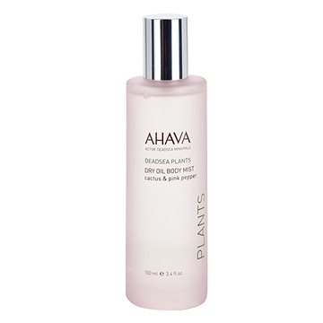Tělový olej AHAVA Dry Oil Body Mist Flavors Cactus & Pink Pepper 100 ml: Luxusní suchý tělový olej ve spreji od značky AHAVA, která se specializuje na kosmetiku s výtažky z Mrtvého moře. Tělový olej s exotickou vůní kaktusu a růžového pepře pokožku hloubkově hydratuje, vyživuje a vyhlazuje a vytváří na ní ochranný film proti vnějším vlivům. AHAVA Dry Oil Body Mist Cactus & Pink Pepper obsahuje intenzivní směs jojobového oleje, řasy Dunaliella a vitamínu E.