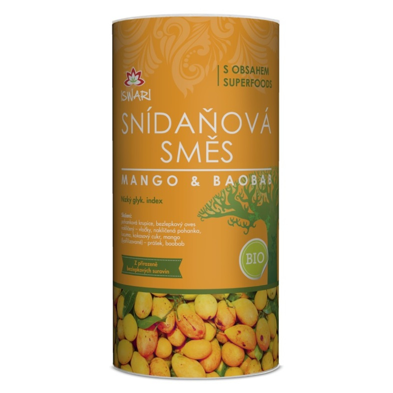 Výrobce: ISWARI Příjemně sladkokyselá snídaňová směs mango a baobab patří k těm nejosvěžujícím snídaním. Dopřejte si zdravou a kvalitní snídani. Bez lepku.