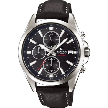 Výrobce: CASIO Pánské hodinky CASIO EFV-560L-1AVUEF:CASIO EFV-560L-1AVUEF jsou vkusné pánské hodinky, které by se na vašem nápěstí zaručeně vyjímaly. Tvoří je kulatý ciferník široký 44 mm, ten chrání patřičně odolné minerální sklíčko. Výrobce zvolil analogové zobrazení. Spolehlivá Quartz technologie je zárukou jak vysoké přesnosti, tak opravdu dlouhé výdrže baterie. Materiál řemínku tvoří kůže, design je tedy příjemný na pohled, aniž by utrpěla funkčnost či komfort při nošení. Hodinky CASIO překonají nápor vody při potápění a plavání, ve větších hloubkách by však nevydržely. Jejich stupeň krytí nese označení 100 m (10 ATM). Klíčové parametry pánských hodinek CASIO EFV-560L-1AVUEF Baterie s dlouhou výdrží a strojek s Quartz systémem Nechybí ani funkce stopek Jednou z primárních funkcí hodinek CASIO EFV-560L-1AVUEF je ukazatel data Ciferník chrání minerální sklíčko, leccos tedy vydrží Materiál pouzdra: ocel Pro řemínek byl zvolen materiál: kůže Úroveň vodotěsnosti hodinek CASIO: 100 m (10 ATM) Zbarvení ciferníku: černá Řemínek má barvu: černá Pánské hodinky jsou řízeny strojkem Quartz Náramkové hodinky CASIO EFV-560L-1AVUEF nabízí i další funkci Pro případ, že byste potřebovali změřit určitý časový úsek, jsou hodinky vybaveny stopkami.