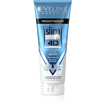 Výrobce: EVELINE COSMETICS Sérum EVELINE COSMETICS Slim Extreme 4D Lifting serum Anti-cellulite - Presotherapy 250 ml: Tělové sérum EVELINE COSMETICS Slim Extreme 4D Lifting serum Anti-cellulite Pressotherapy 250 ml se inspirovalo pozitivními účinky presoterapie, která rozpouští tuky a odstraňuje toxiny z těla. Díky PRO-SVELTYL komplexu s kofeinem a třífázové LIPO-COMPRESSION technologii odstraňuje příznaky pomerančové kůže a zanechává vaši pokožku přirozeně hladkou a jemnou. Tělové sérum Pressotherapy účinně bojuje se všemi druhy celulitidy, eliminuje množství podkožní tukové tkáně a stimuluje odvodňování tkání. Klíčové vlastnosti tělového séra Eveline Cosmetics Slim Extreme 4D Lifting Anti-cellulite Pressotherapy 250 mlInovativní technologie odstraňuje příznaky pomerančové kůžeAktivně působí proti všem druhům celulitidySnižuje množství podkožního tukuTělové sérum Presotherapy stimuluje odvodňování tkáníZpevňuje a vyhlazuje pokožku Použití:Pro nejlepší účinky vmasírujte dvakrát denně do pokožky problémových partií a míst postižených celulitidou.Složení:PRO-SVELTYL - zeštíhlující komplex založený na lotosovém extraktuTřikrát koncentrovaný kofeinCentella asiatica + extrakt z břečťanuKOLAGEN + elastinExtrakt z mořských řas + minerály termálních vod