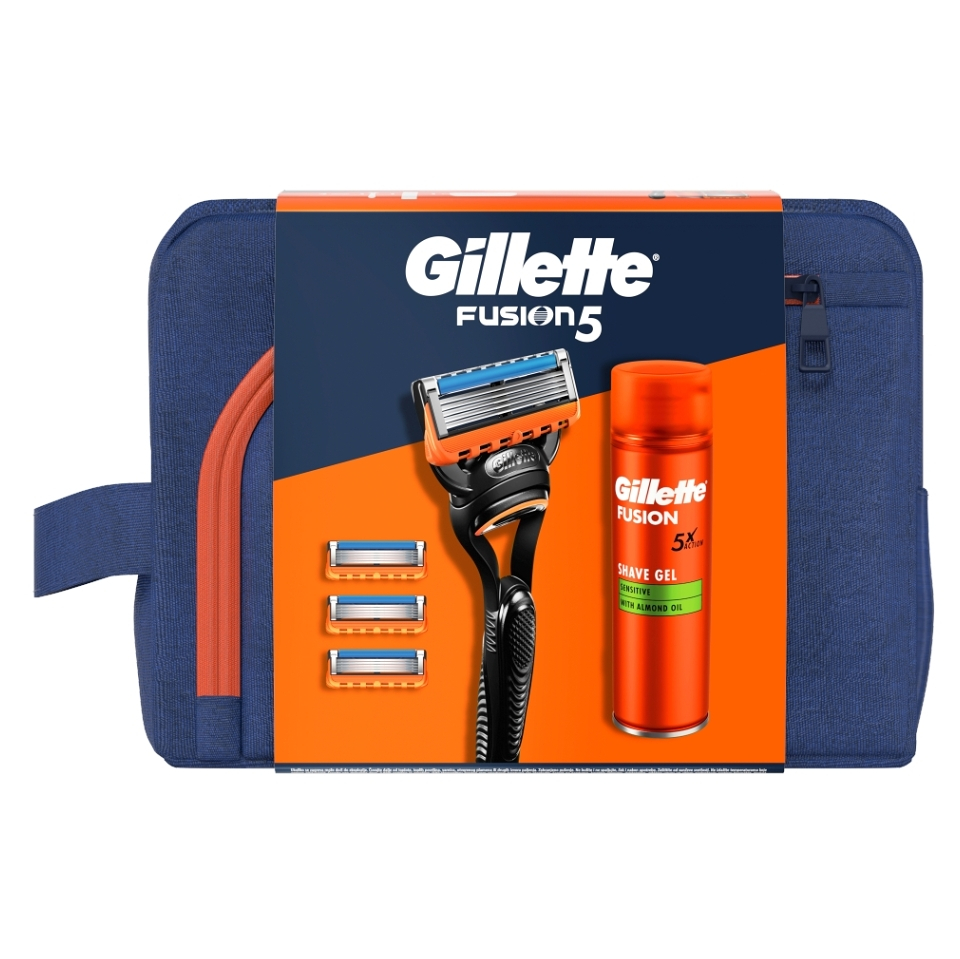 Dárková sada obsahuje Gillette Fusion Holicí Strojek + Gillette gel 200 ml + 4NH +taška.