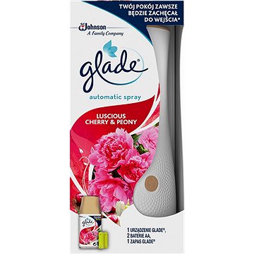 Výrobce: GLADE Osvěžovač vzduchu GLADE Automatic Spray Pivoňka & Višeň strojek + náplň 269 ml: Sháníte příjemný osvěžovač vzduchu, který pohltí nepříjemné pachy a zanechá příjemnou vůni? Vyzkoušejte osvěžovač vzduchu GLADE Automatic Spray s náplní. Tento osvěžovač se vyrábí v různých vůních, tak vás nikdy neomrzí a můžete je střídat podle nálady nebo třeba ročních období. Osvěžovač vzduchu GLADE Automatic Spray je vybaven novou technologií odstraňování pachů, díky které jsou všechny nežádoucí pachy zlikvidovány a zůstává příjemná vůně. Osvěžovač vzduchu GLADE je dodáván jako strojek s vyměnitelnou náplní. Klíčové vlastnosti osvěžovače vzduchu GLADE Automatic Spray s vůní pivoňky a višněOsvěžovač vzduchu GLADE se dodává ve formě strojku s vyměnitelnou náplníMá novou technologii pohlcování pachůVyrábí se v různých vůníchGLADE Automatic Spray funguje na 2 AA baterieTlačítko pro extra osvěžení3 stupně intenzity uvolňování vůněObnovuje svěžest a zanechává příjemnou vůni až 60 dnůVůně pivoňky a višně Používání osvěžovače vzduchu GLADE Automatic Spray S osvěžovačem vzduchu GLADE docílíte příjemné vůně až po dobu 60 dnů. V případě potřeby najdete na zadní straně speciální tlačítko pro extra osvěžení. Osvěžovač vzduchu GLADE má na výběr 3 stupně nastavení intenzity uvolňování vůně dle vašich požadavků. Tento přístroj funguje na 2 AA baterie, které jsou součástí balení. Snadno provoní i větší místnosti.Balení obsahuje:StrojekVůni2 AA baterieRozměry balení:209 × 95 × 95 mmSložení: aceton, isopentan, 1,3-butadiene, 2-methylbutane isopentane