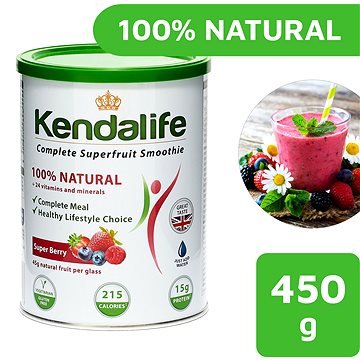 Nápoj Kendalife Superberry (lesní plody) koktejl 450 g: Denní zdroj energie, který plnohodnotně nahrazuje klasickou stravu100% přírodní nutričně vyvážený nápoj Superberry Kendalife s příchutí lesních plodů o obsahu 450g je vhodný pro dospělé, skvěle slouží jako denní zdroj energie a plnohodnotně nahrazuje klasickou stravu, a to jedno až dvě jídla denně.