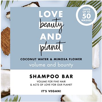 Tuhý šampon LOVE BEAUTY AND PLANET Volume and Bounty Shampoo 90 g: Tuhý šampon Love beauty and planet Volume and Bounty vám splní sen o hustých nadýchaných vlasech! Šampon vás naláká svou jemnou kokosovou vůní a roztomilým vzhledem.
