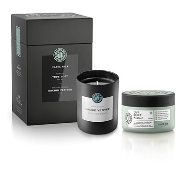 Dárková kosmetická sada MARIA NILA True Soft + Candle: Dárková kosmetická sada MARIA NILA True Soft s přírodní intenzivní vlasovou maskou od švédského specialisty na přírodní kosmetiku a vonnou svíčkou Orchid Vetiver s krásnou nasládle dřevitou vůní.