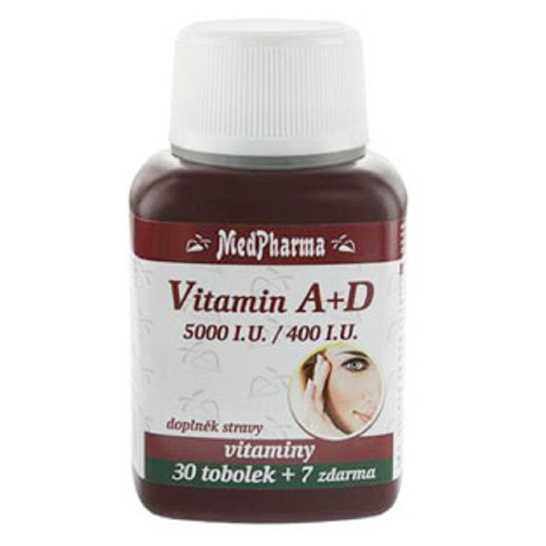 Medpharma vitamín A + D přípravek obsahuje vitamin A a D.