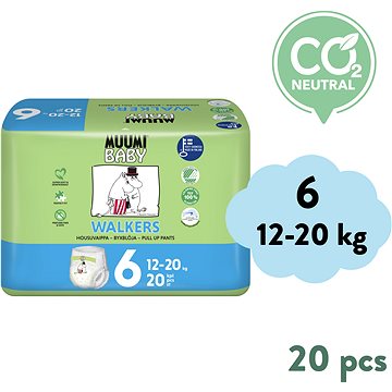 Eko plenkové kalhotky MUUMI BABY Walkers Junior vel. 6 (20 ks): Zajímáte se o ekologii? Rádi byste svému dítěti kupovali plenkové kalhotky, které nezatíží přírodu, a zároveň budou k jeho pokožce citlivé a šetrné? Pokud ano, ideálním řešením jsou jednorázové ekologické bio plenkové kalhotky Walkers značky Muumi Baby.