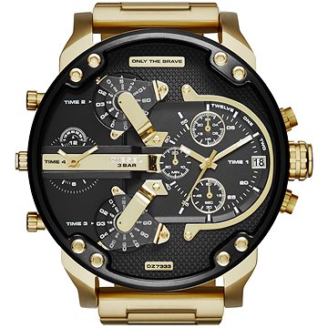 Výrobce: DIESEL Pánské hodinky Pánské hodinky DIESEL THE DADDIES SERIES DZ7333:Pánské hodinky DIESEL THE DADDIES SERIES DZ7333 jsou nadčasové pánské hodinky, které nedáte z ruky. Jejich základem je kulatý ciferník o velikosti 57 mm, ten chrání pevné minerální sklíčko. Výrobce zvolil klasické ručičky. Spolehlivá Quartz technologie je příslibem vysoké spolehlivosti a dlouhé výdrže baterie. Materiál řemínku tvoří ocel, design je tedy příjemný na pohled, přičemž samozřejmostí je naprostý komfort při nošení. Značkové hodinky DIESEL bez problémů odolají stříkající vodě při opatrném mytí rukou nebo v dešti, do sprchy nebo přímo do vody ale nepatří. Úroveň krytí mají 30 m (3 ATM). Klíčové vlastnosti pánských hodinek Pánské hodinky DIESEL THE DADDIES SERIES DZ7333 Strojek s Quartz technologií běží na baterii s dlouhou výdrží Na ciferníku najdete minerální sklíčko, vydrží toho tedy opravdu hodně Materiálem pouzdra je ocel Pro řemínek byl zvolen materiál: ocel Stupeň vodotěsnosti hodinek DIESEL: 30 m (3 ATM) Zbarvení řemínku: zlatá Pánské hodinky mají strojek Quartz