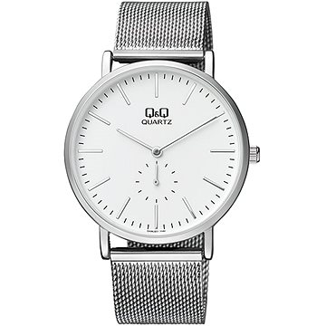 Výrobce: Q&Q Pánské hodinky Q&Q Standard QA96J201:Q&Q Standard QA96J201 jsou solidní pánské hodinky vhodné pro všechny, kteří chtějí efektivně organizovat svůj čas a mají styl. Najdete na nich kulatý ciferník o velikosti 40 mm, který překrývá patřičně odolné minerální sklíčko. Těšit se můžete na staré dobré ručičky. Kvalitní technologie Quartz je synonymem vysoké životnosti baterie a přesnosti měření. Řemínek tvoří ocel, což vede k líbivému designu, nikoli však na úkor funkčnosti a komfortu. Značkové hodinky Q&Q hravě odolají stříkající vodě a běžnému dešti, ke sprchování nebo do vody ale vhodné nejsou. Úroveň krytí mají 30 m (3 ATM). Podstatné výhody pánských hodinek Q&Q Standard QA96J201 Technologie Quartz a dlouhá výdrž baterie Mají odolné minerální sklíčko, takže se nemusíte bát škrábanců Materiál pouzdra: mosaz Řemínek tvoří ocel Stupeň vodotěsnosti hodinek Q&Q: 30 m (3 ATM) Zbarvení ciferníku: bílá Řemínek má barvu: stříbrná Pánské hodinky nabídnou strojek Quartz