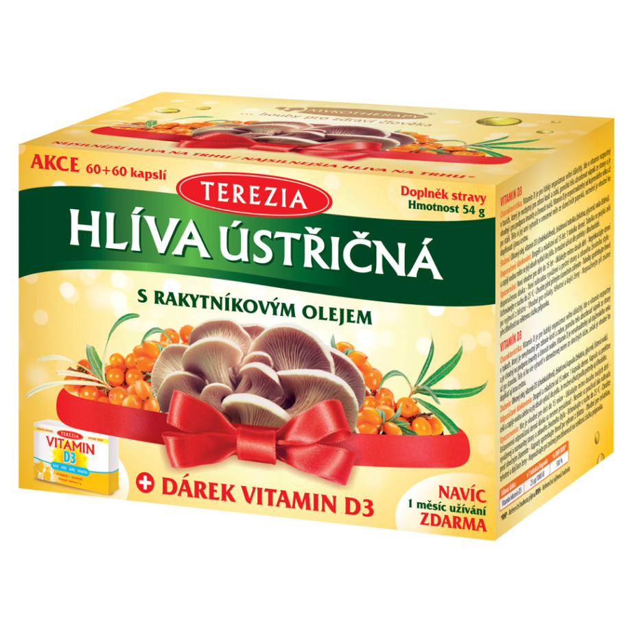 TEREZIA Hlíva ústřičná s rakytníkovým olejem 120 kapslí + DÁREK vitamin D3 30 tobolek