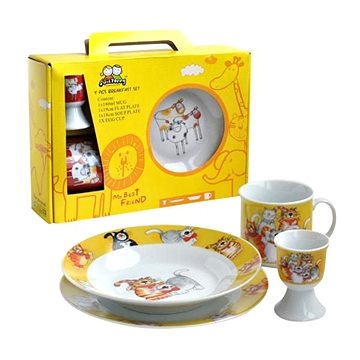 Výrobce: Toro Dětská jídelní sada Toro Dětská jídelní souprava 4ks v kufříku: Už je na čase, aby vaše dítko mělo vlastní jídelní set? Pak ho jistě potěší krásná sada zdobená veselými zvířátky. Plně využijete všechny kusy nádobí - talíř, misku, hrneček i kalíšek na vajíčka. Souprava je vyrobená z keramiky, je zdravotně nezávadná a certifikovaná. Můžete ji vložit jak do myčky, tak i do mikrovlnné trouby. Manipulace s nádobím je pro děti velmi snadná. Celá sada je navíc umístěná v pěkném kufříku, takže plně poslouží i jako nádherný dárek. Při každém jídle i svačině se bude vaše ratolest těšit na společnost nových zvířecích kamarádů, které mu pomohou vše zbaštit. Klíčové vlastnosti jídelní sady TORO v kufříku, 4 ks s obrázky zvířátekSada nádobí je zdobená obrázky veselých zvířátekSouprava obsahuje 4 kusy nádobíNádobí je možné vložit do myčky i mikrovlnné troubyJídelní souprava je vyrobená z keramikySet je zdravotně nezávadný a certifikovanýZacházení s nádobím je pro děti lehkéSet je umístěný v krásném dárkovém kufříkuSada obsahuje:talíř 20 × 2 cmmisku 400 mlhrnek 200 mlkalíšek na vajíčka