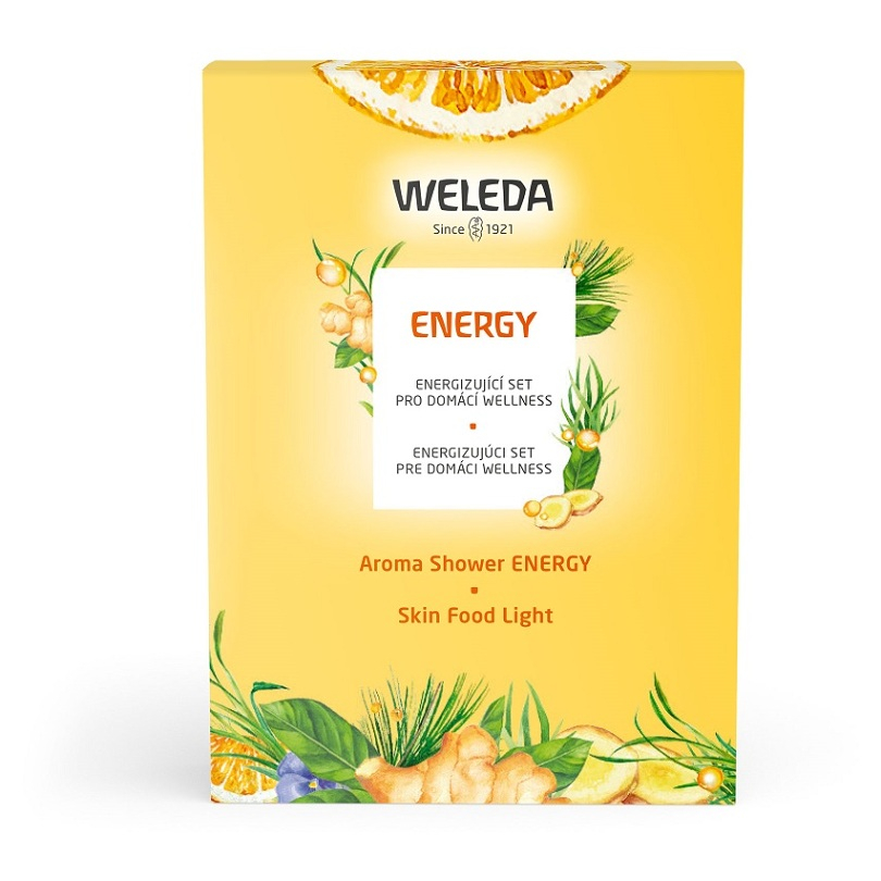 Energizující set pro domácí wellness obsahuje Aroma Shower Energy - stimulační sprchový gel a osvěžující hydratační krém.