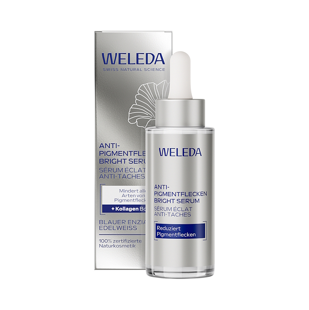 Výrobce: WELEDA Sérum s Collagen+ Active komplexem a extraktem z klíčků ječmene pro viditelné zredukování pigmentových skvrn a podporu tvorby kolagenu v pleti.